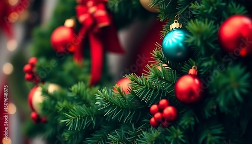 close up of a christmas tree with ornaments