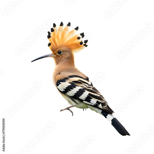 Close up of a hoopoe bird with its distinctive crest against a black background