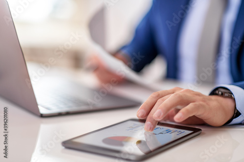 Close up of businessman using tablet