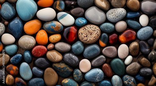 close up of colored beach stones, abstract stone background