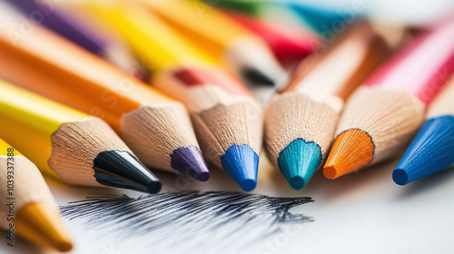 Close up of colored pencils.