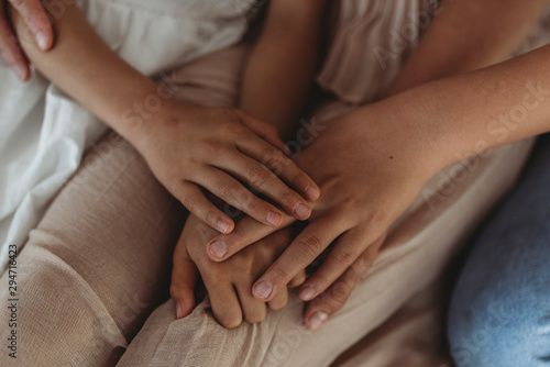 Close up of family's hands intertwined