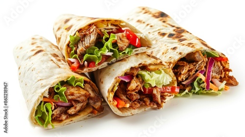 Close Up of Four Chicken Shawarma Wraps With Vegetables