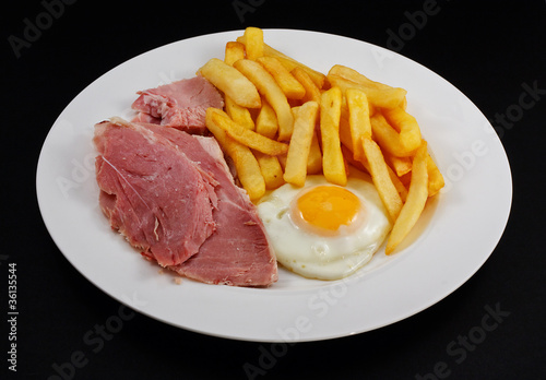 Close up of Ham egg and chips
