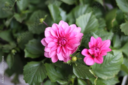Close up of pink dahlia flowers in the bough-pot