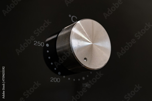Close up of silver oven temperature controller