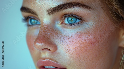 Close up of Woman s Eye with Blue Eyes and Freckles