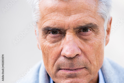 Close up older man head with eyes staring