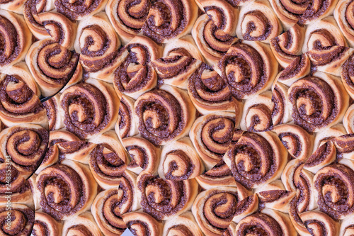 Close up shot of cinnamon buns. Homemade cinnamon rolls