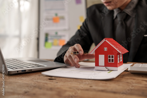 Close up smiling manager realtor consulting client, real estate agent reading contracts agreement.