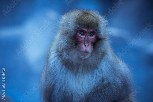 Close up Snow monkey Face in the Jigokudani park, Japan