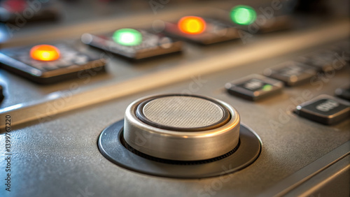 close up view of control panel featuring emergency button, showcasing concept of functionality and safety in technology