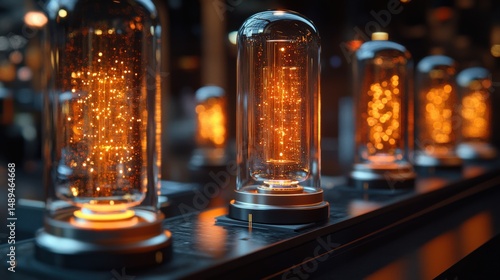 Close up view of illuminated glass domes with warm lights and sparkling effects
