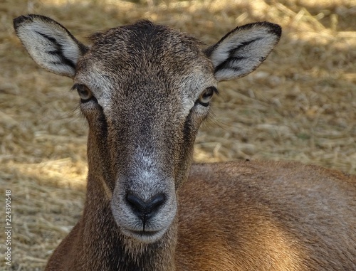Close up with moufflon female, front view