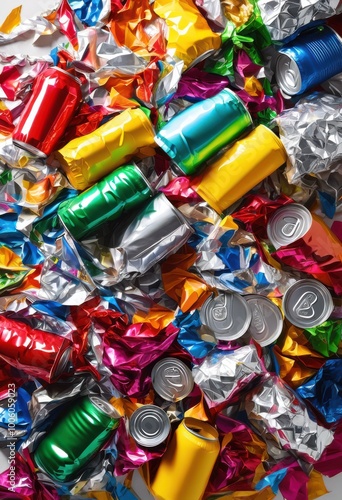 close vibrant composition featuring fresh recyclable materials colorful arrangement, aluminum, background, bin, bright, cardboard, colors, collection