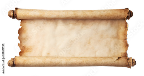 Closed parchment scroll on a transparent background. isolated background.