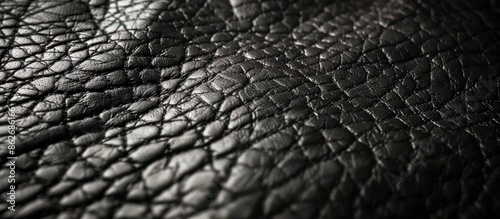 Close-up black lamb leather texture background with copy space image for text.