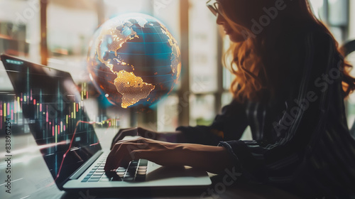 Close-up Businesswoman professionals are using desktop to work on a project together in the office. Using economic growth charts and network connections to accompany the data. in analyzing future