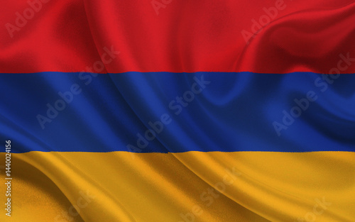 Close-up capture of the Armenian flag, featuring red, blue, and yellow in textured folds, symbolizing national pride