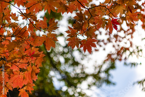close-up colorful fall foliage in sunny day. beautiful autumn landscape background
