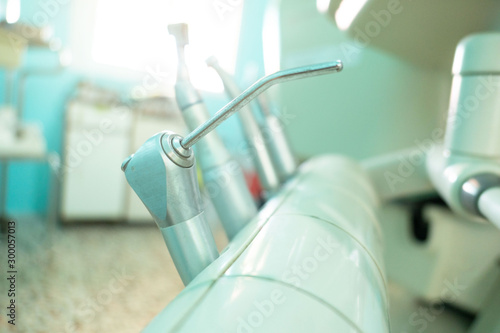 closeup Dental Equipment , instrument in dentists clinic . Teeth care concept .