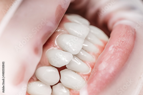 Close-up dental examination. Dental care concept, oral hygiene, professional treatment, patient examination.
