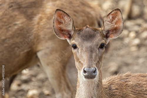 Close-up image of group of deer on deer park