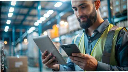 Close-Up Logistics Coordinator Managing Expenses Smartphone Tablet Macro Shot