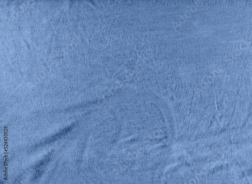 Close-up ltexture of natural blue fabric or cloth in light blue color. Fabric texture of natural textile material. Blue canvas background