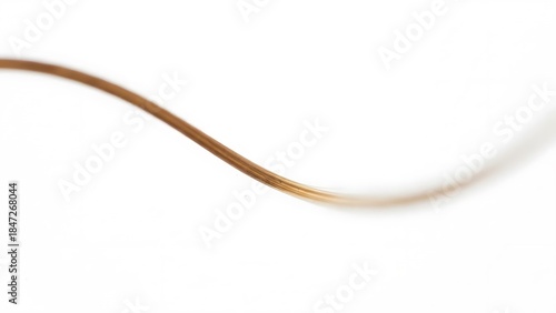 Close-up Macro Shot of a Single Brown Hair Strand Isolated on White Background