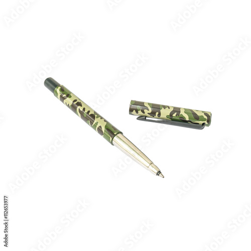 Closeup military pattern pen , beautiful pen isolated on white background with clipping path