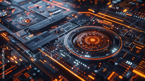 Close-up of a 3D sci-fi blockchain interface showcasing detailed technology and dark strategic algorithms