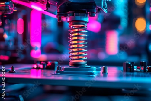 Close-up of a black spring with a yellowish hue, embodying tension and energy due to its tightly coiled state, ready to unleash power