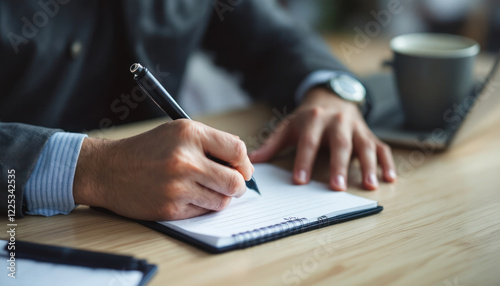 Close-up of a Businessman's Hand Writing Notes in a Notebook