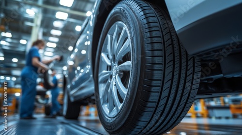 Close-up of a Car Tire in an Automotive Factory