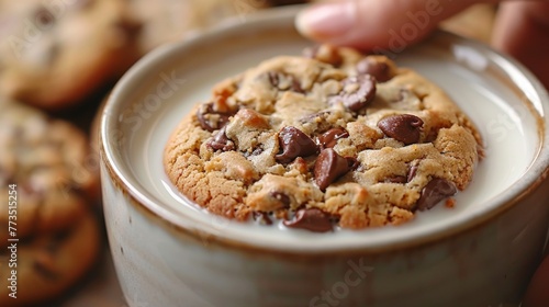 Close-up of a delicious chocolate chip cookie with gooey chocolate morsels