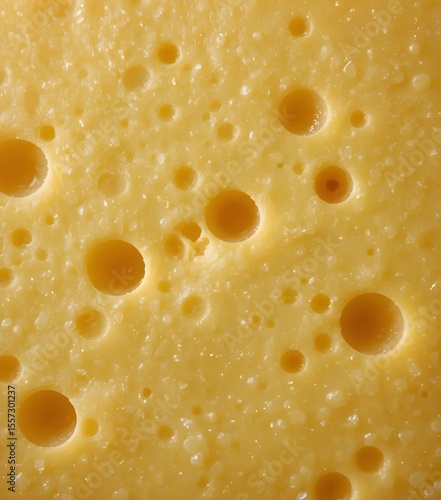 Close-up of a delicious, natural Swiss cheese with holes, providing a detailed texture and appetizing view
