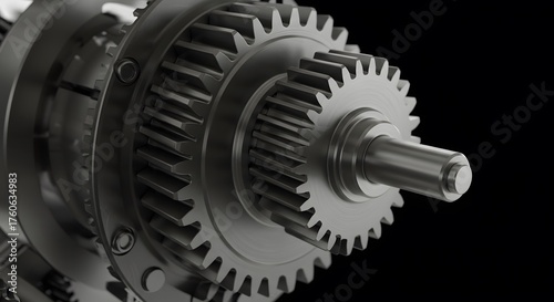 Close-up of a detailed metallic gear mechanism with intricate teeth and a central shaft