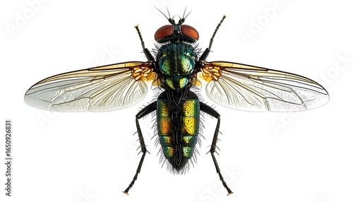 Close-up of a fly with iridescent colors