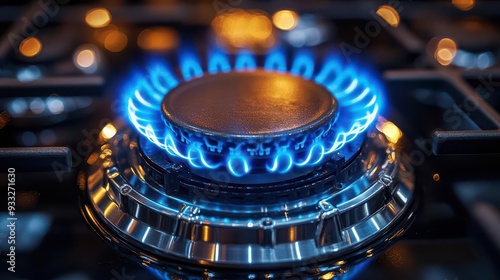 closeup of a gas stove burner with vibrant blue flames symbolizes energy consumption and rising costs in a striking semitransparent illustration