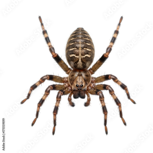 Close-up of a large spider, front-facing, intricate patterns