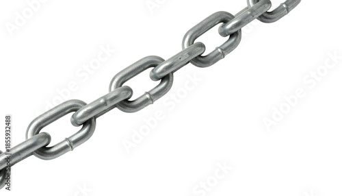 Close-up of a metallic chain links against a black background. The chain extends diagonally. Each link has a smooth, shiny appearance