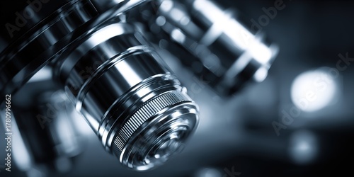 Close-up of a modern microscope showcasing detail and craftsmanship in a scientific laboratory setting
