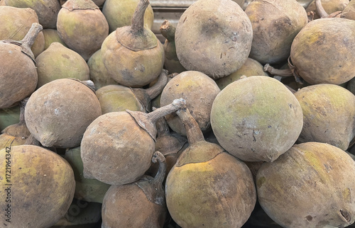 Close-up of a pile of mamoncillo, sapote, or chupa-chupa, a tropical and exotic fruit
