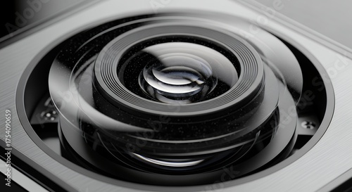 Close-up of a precision-engineered optical lens system, showcasing advanced technology and intricate design for high-performance imaging