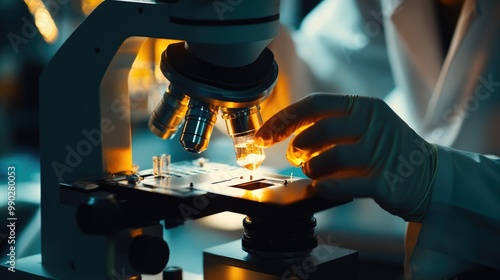 Close-Up of a Scientist Using a Microscope in a Laboratory