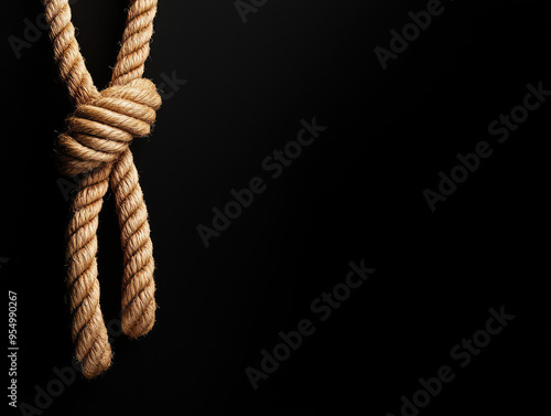 Close-up of a tied rope knot on a black background, symbolizing strength and connection in various applications.