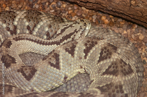 closeup of a timber rattler