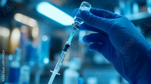 Close-up of a vaccine vial being opened, the medical worker's steady hand holding a syringe, reflecting sterile clinical accuracy
