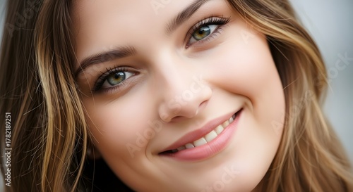 Close-up of a young woman with mischievous smile, playful look